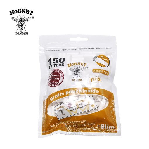The Hornet Filter Tips brown are pre-rolled and unbleached made of natural fibres and use only natural gum to create the seal. Each unbleached pre-rolled slim roach tip is 6mm in diameter and 18mm in length. Each box holds 150 tips.